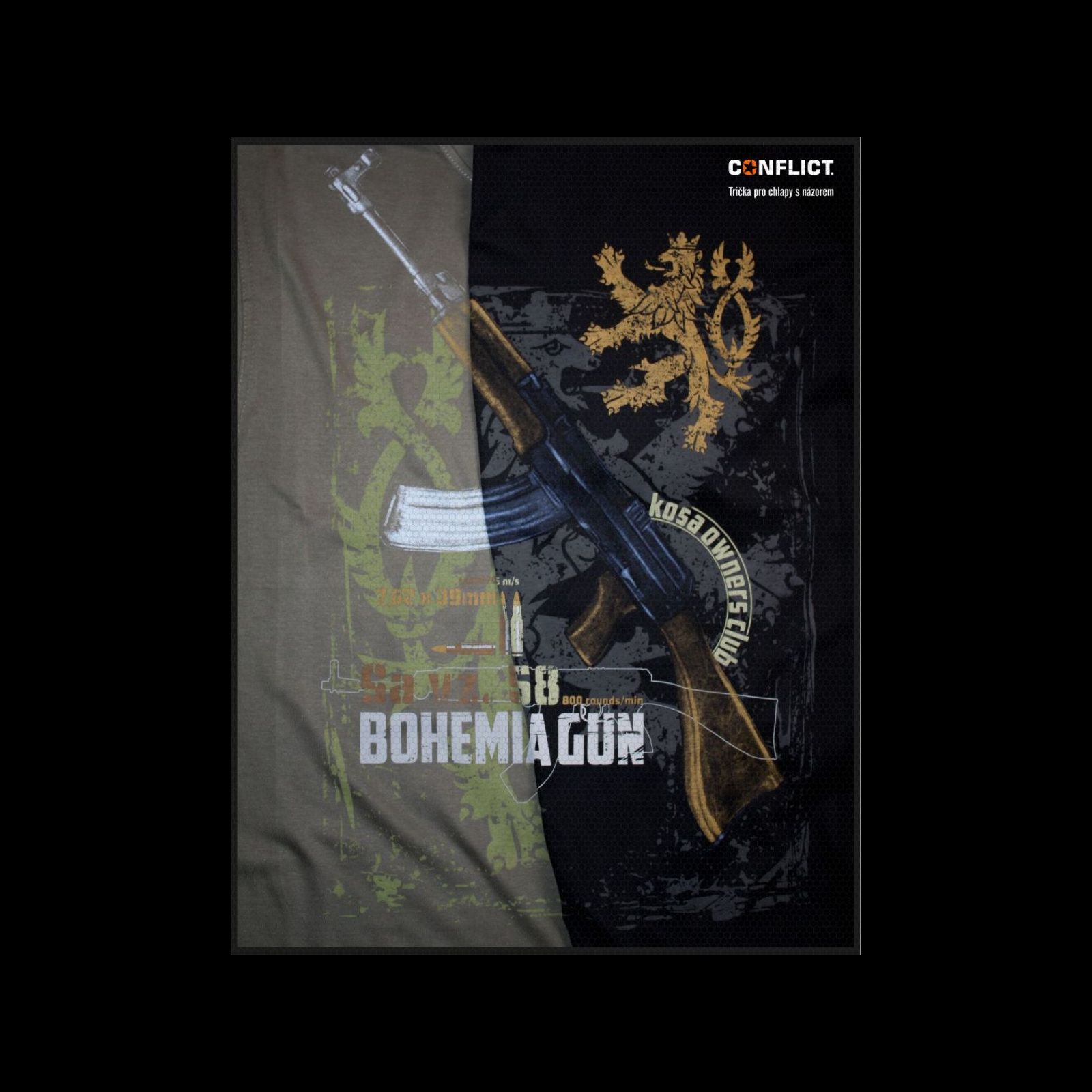 Tričko s designem vycházející ze spolupráce Conflict a malířkou Lileas s hlavním motivem českého samopalu vzor 58.