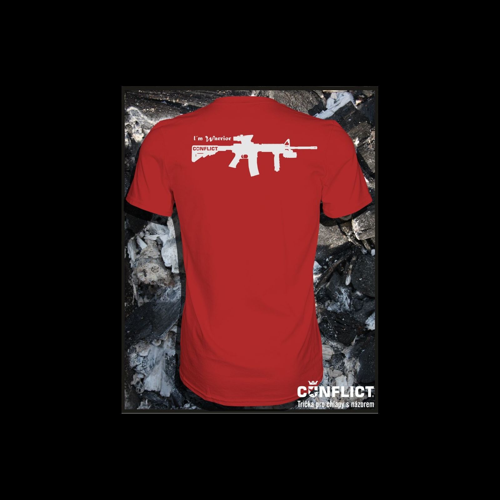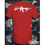- na zádech je potisk zbraně M4 s logem Conflict.