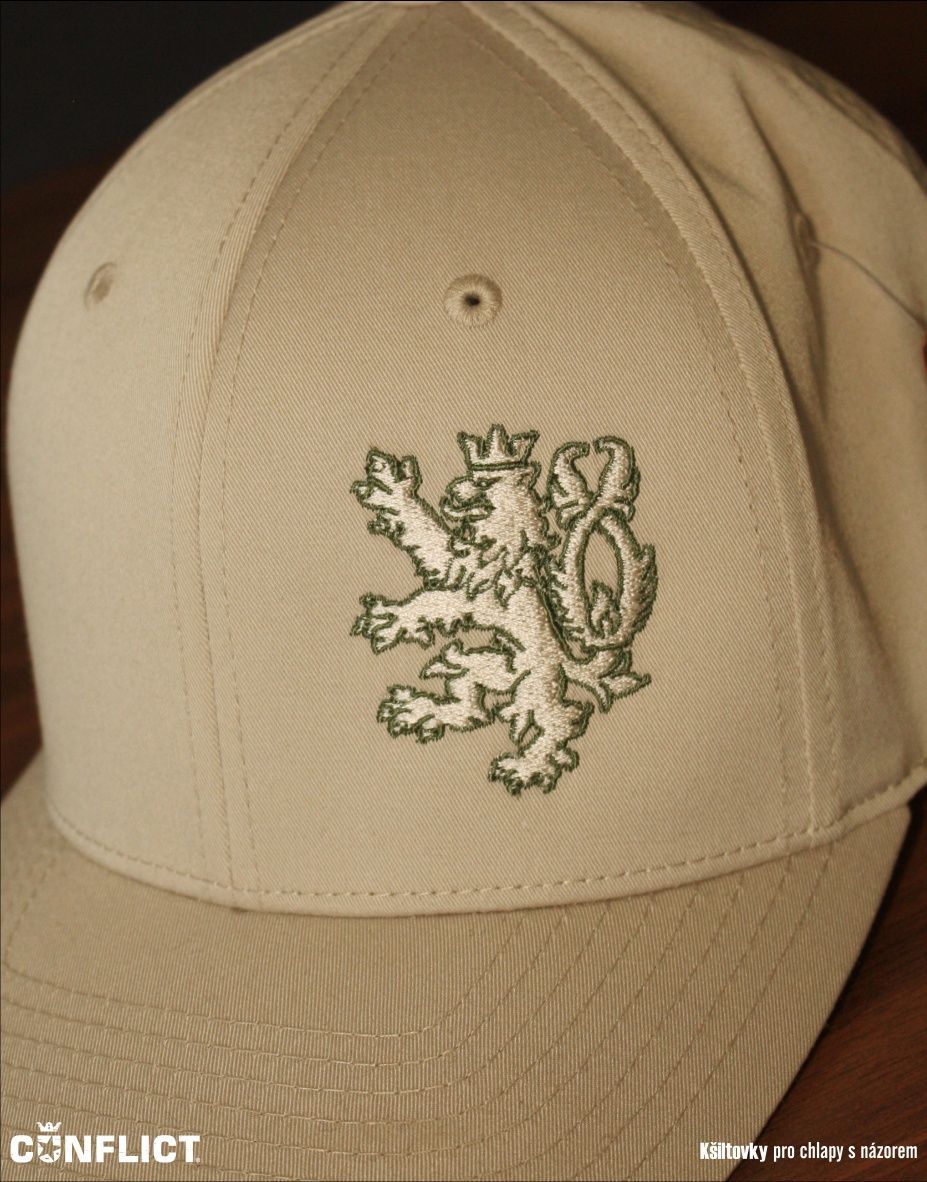 - vyšitý lvíček na levém předním panelu, na kšiltu je český lvíček, v zadní části ve spodní hraně je logo Conflict