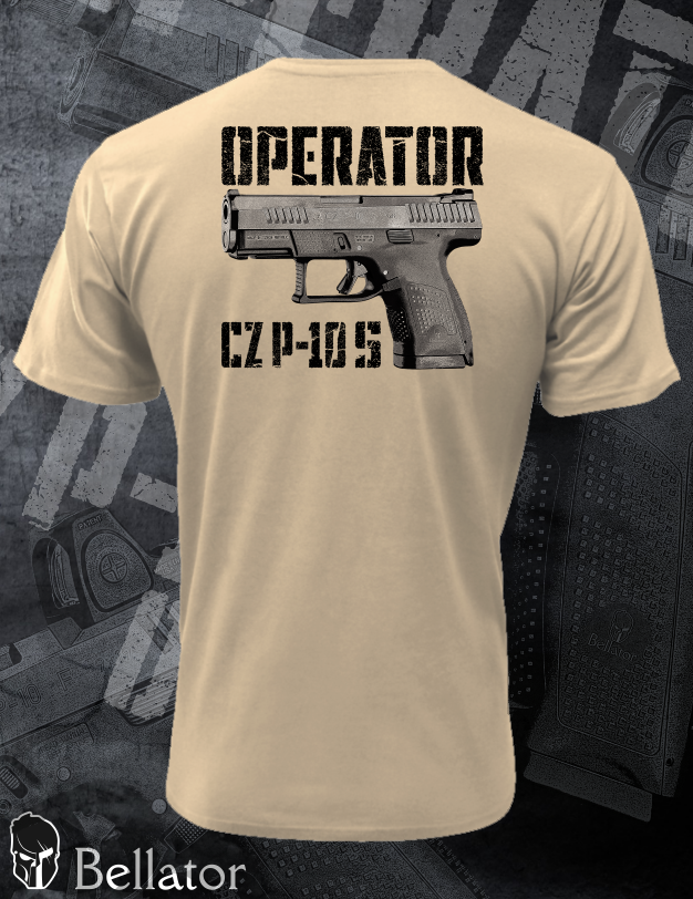 - Vepředu na levém prsu je vyobrazena zbraň CZ P-10-S. Hlavní motiv zbraně je umístěn na zádech spolu s nápisem OPERATOR.