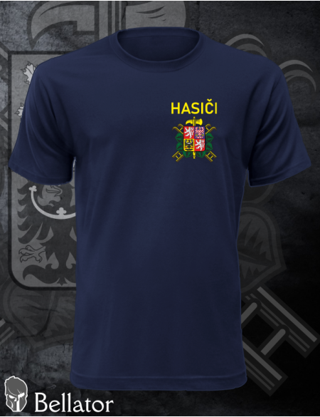 - Pánské tričko vysoké gramáže s potiskem HASIČI a s hasičským znakem na levém prsu.