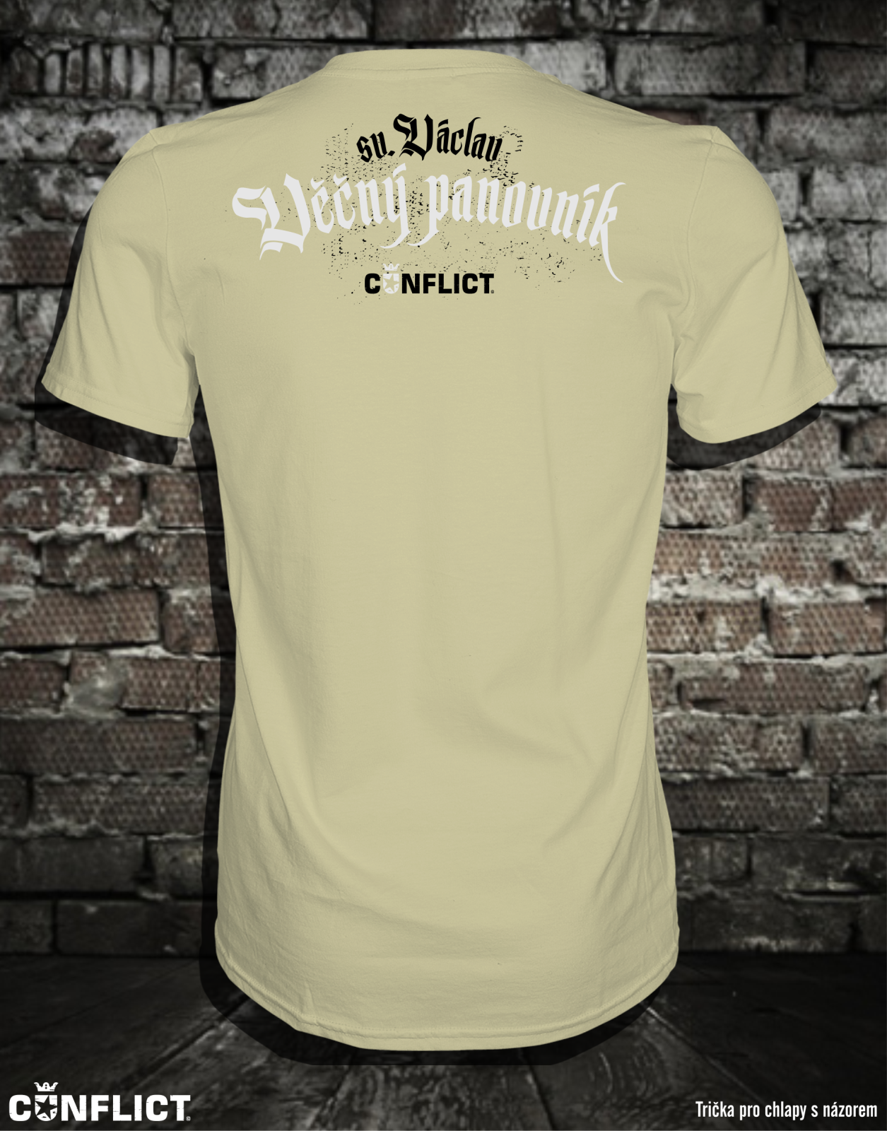 - The T-shirt has a print of St. Wenceslas on a horse on the front and an inscription with a small Conflict logo on the back