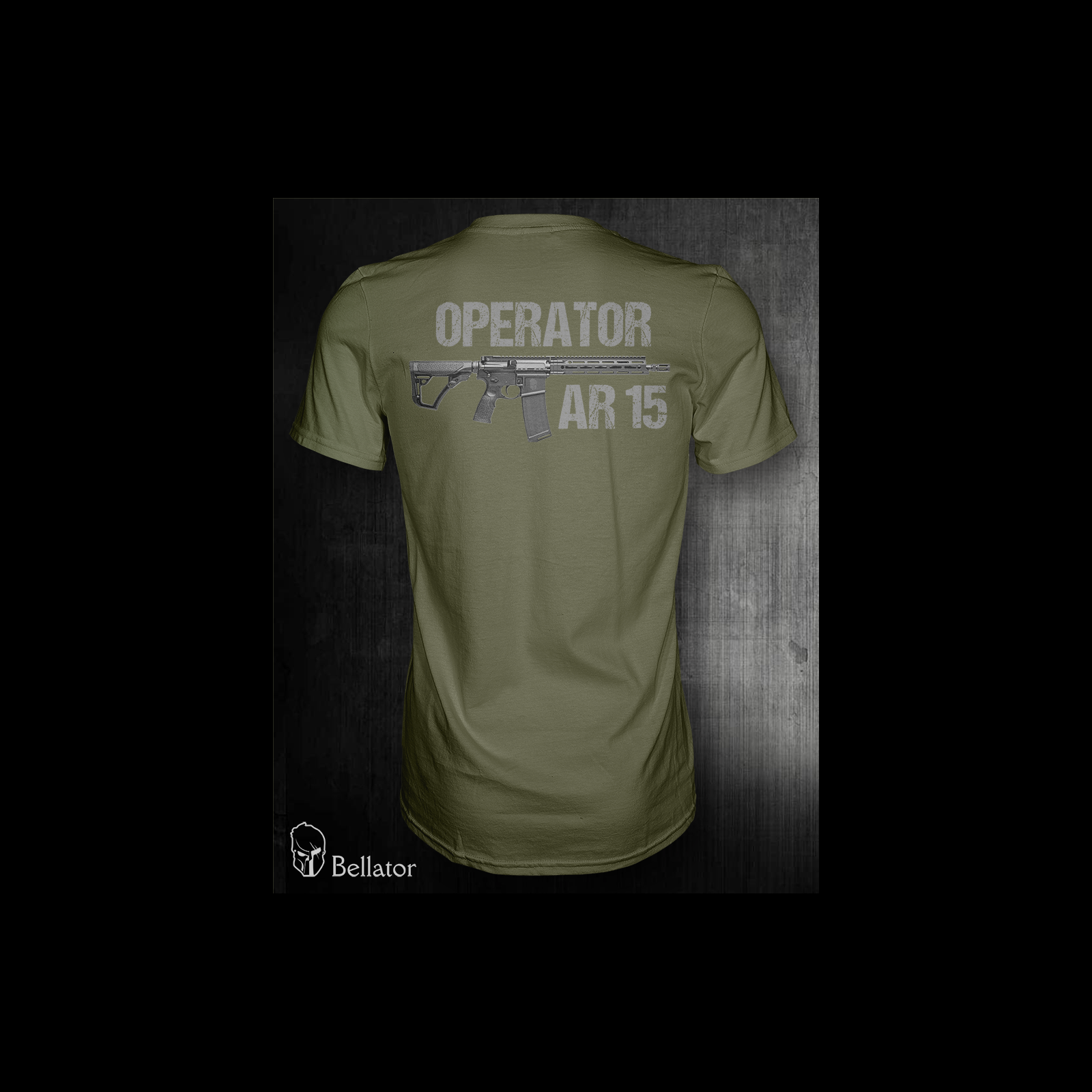 - Vepředu na levém prsu je vyobrazena zbraň AR 15. Hlavní motiv zbraně je umístěn na zádech spolu s nápisem OPERATOR.