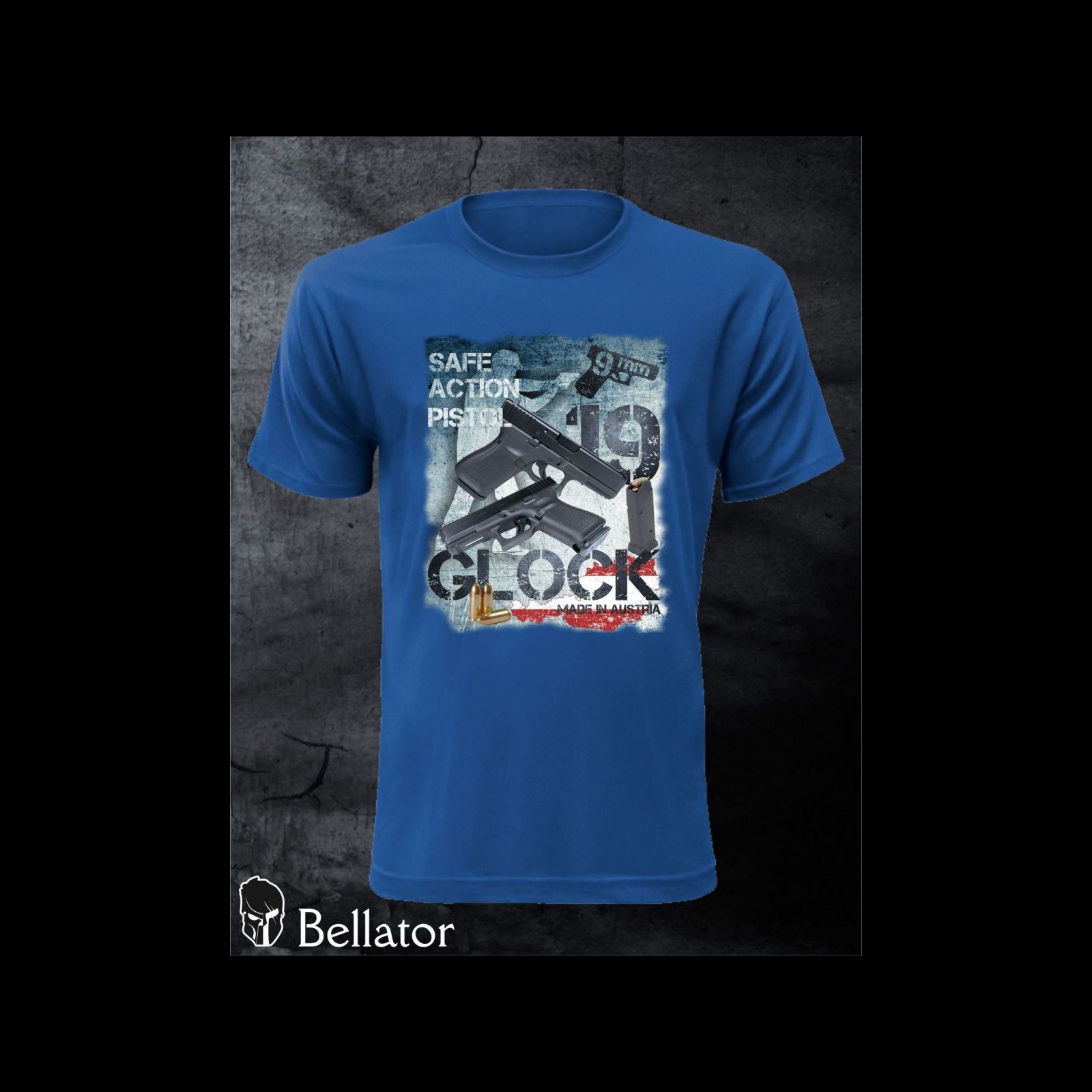 - Tričko je vhodné pro majitele a fanoušky zbraní Glock, konkrétně tedy s číslem 19. Tato zbraň používá nejrozšířenější ráži 9 mm.