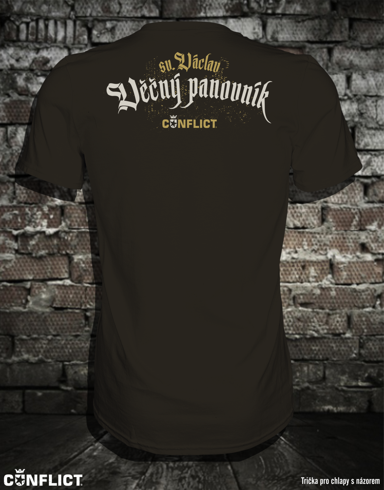 - Tričko má vepředu potisk svatého Václava na koni a na zádech nápis s malý logem Conflict